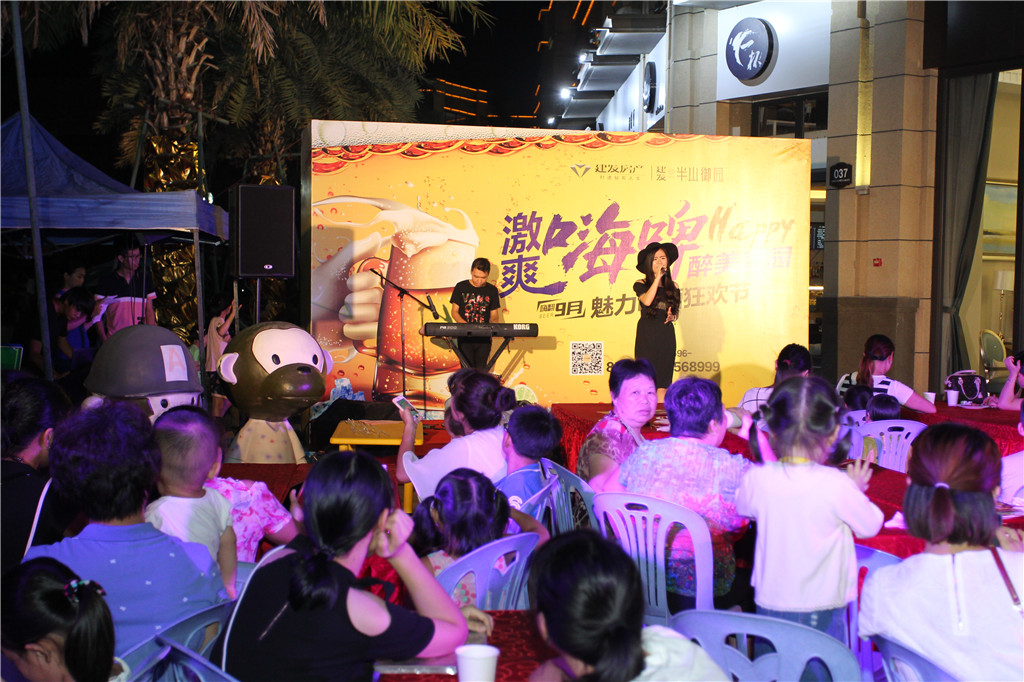 建發(fā)·半山御園誠邀知名樂隊(duì)激情助陣,魅力獻(xiàn)唱,讓整個(gè)啤酒狂歡節(jié)現(xiàn)場熱情四射。現(xiàn)場更有游戲互動(dòng)環(huán)節(jié),長管飲酒、疊疊高,搖頭晃腦等互動(dòng)。“走一個(gè)”、“干杯!”、“爽!”這是當(dāng)晚聽到最多的詞語,也是熱衷于啤酒、燒烤的朋友,最豪爽的表現(xiàn)。活動(dòng)現(xiàn)場,歡樂聲沸騰了整個(gè)廣場。這個(gè)晚上,吹著涼爽的夏風(fēng),伴著音樂啤酒,所有人都將歡樂盡情揮灑。