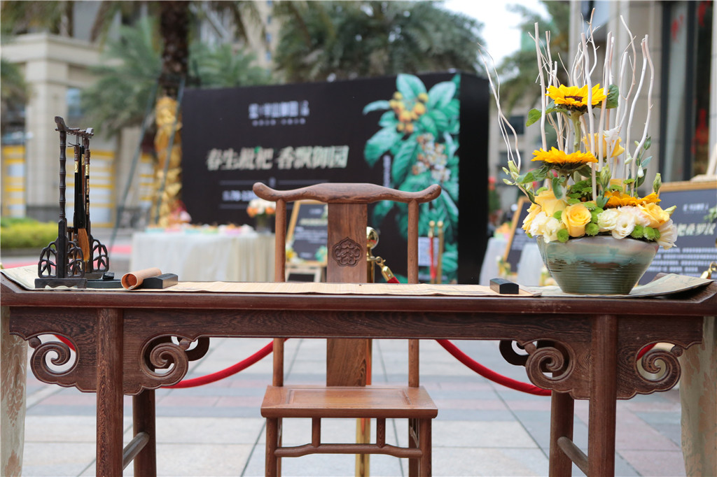 一踏進活動現(xiàn)場,一席古風雅韻撲面而來,中式木質(zhì)桌作為簽到臺,搭配中式水墨元素桌旗,彰顯出東風典雅。院子作為背景,一棵玉蘭樹下,一位著古裝女子彈著手中琵琶,一曲春頌覓知音,羨煞旁人,好一派風雅。來賓爭相合影,親密感觸,定格這美好的瞬間。
