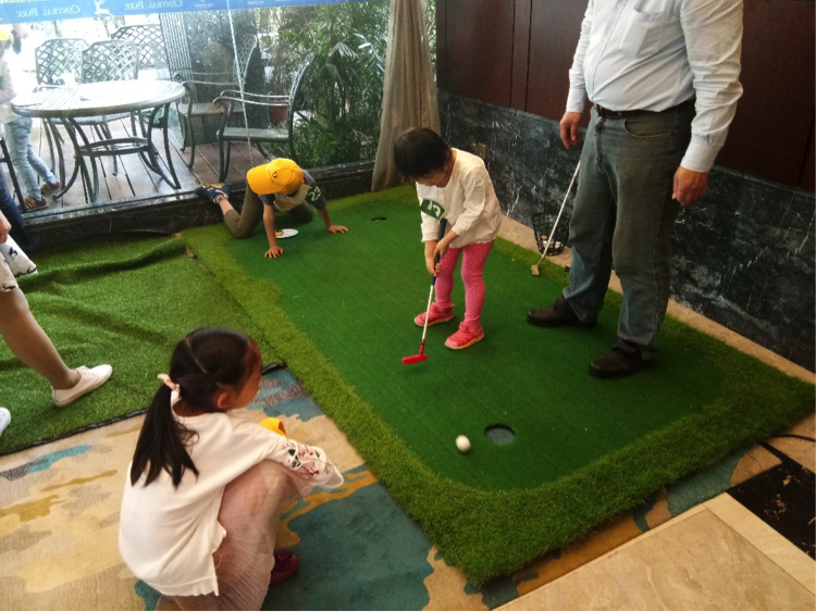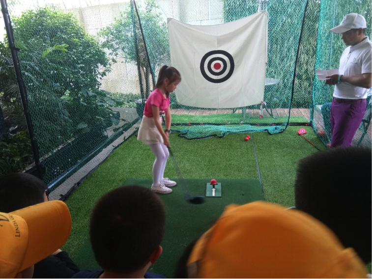 小學員們初步了解高爾夫球桿的構(gòu)造、站姿及握桿的方法之后,開始嘗試展示優(yōu)美的姿勢及完美的動作。在學習與游戲相結(jié)合中,小學員對高爾夫的興趣、高爾夫知識、身體的協(xié)調(diào)性和反應速度也有著大大的提升。家長和孩子們盡情領(lǐng)略高爾夫魅力的同時,還品嘗了由中央公園貼心提供的美味披薩、甜心泡芙等冷餐,氣氛溫馨又甜蜜。