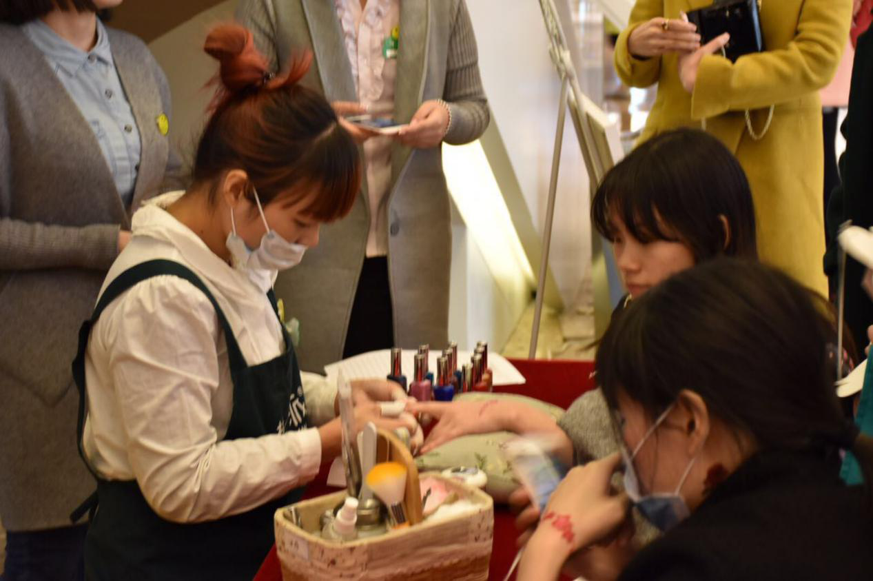 美甲和人體彩繪區(qū):專業(yè)的美甲師、彩繪師提供優(yōu)質(zhì)免費(fèi)的服務(wù),讓大家在2015的最后一天擁有更美麗的容顏和心情。這片區(qū)域人山人海,排隊(duì)客戶接踵而至!