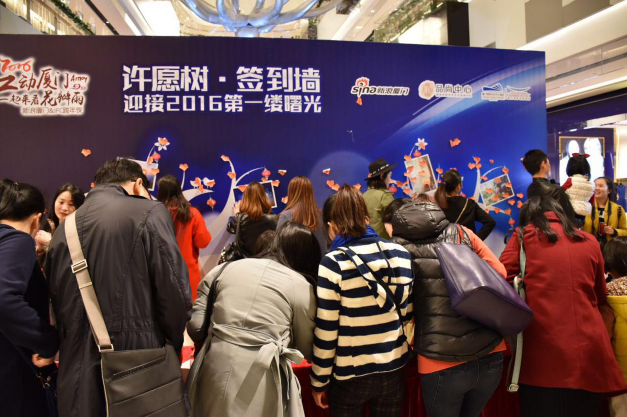 許愿樹+簽到墻:對于即將到來的2016年,心中的愿望都可以寫下貼在許愿樹上,活動(dòng)剛開始,簽到墻上就已經(jīng)寫滿了心意與祝福。