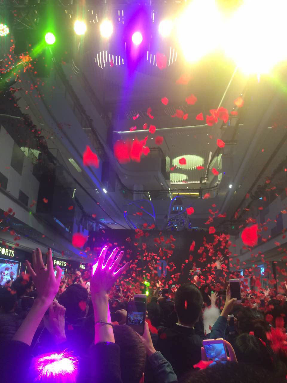 新年鐘聲敲響之際,千人歡聚JFC跨年倒數(shù)。零點(diǎn)整,百萬花瓣從天而降,在歡呼聲中,大家將手中的花瓣也一齊撒向天空,共同歡呼新年快樂,喜迎2016年的到來!