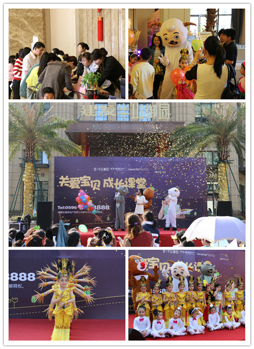 4月12日下午3點,“關(guān)愛寶貝·成長課堂”開課儀式在半山御園的金馬廣場正式啟動,活動現(xiàn)場不僅有精彩的少兒才藝表演,豐富有趣的互動游戲,更有熊大、喜羊羊、灰太狼等玩偶跳舞表演。臺上兒童各個都有明星范兒,柔軟的身子,高難度的動作、到位的表情以及極強(qiáng)的舞臺表現(xiàn)力都讓現(xiàn)場的觀眾瞠目結(jié)舌,精心編排的少兒版《千手觀音》舞蹈更是不禁讓觀眾們?yōu)榕_上孩子們歡呼鼓舞。