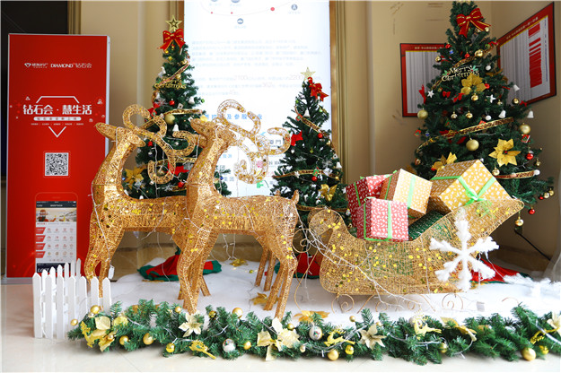 一走進(jìn)售樓處,巨型的圣誕樹(shù)、金光閃閃的麋鹿及夢(mèng)幻般的雪景布置,以及歡快的圣誕主題裝飾……整個(gè)營(yíng)銷(xiāo)中心都已沉浸在圣誕節(jié)浪漫的氣氛中。