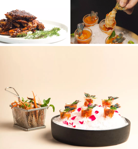 泰式黃咖喱炒蟹,是判定一家泰餐廳是否合格的標準,西泰的黃咖喱口感溫和醇香、蟹肉飽滿肥厚,堪稱菜品擔當;珍寶辣椒蟹配黃金饅頭,鮮美多汁,絕對是米飯殺手;石鍋豆腐蒜蓉南瓜,細膩的豆腐配上口感豐美的醬汁,吃一口就很驚喜!西泰還有泰式精選大頭蝦刺身等地道佳肴,是值得大家經(jīng)常打卡的好去處哦。