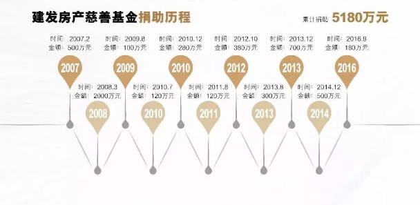 2007年,建發(fā)房產(chǎn)慈善基金成立,秉承"有愛(ài)就有路"的理念,目前已累計(jì)向該基金捐贈(zèng)了5180萬(wàn)元,資助貧困大學(xué)生超過(guò)5500人,資助貧困家庭超過(guò)2500戶,希望為每一個(gè)有夢(mèng)想的奮斗者插上翱翔的翅膀。除此之外,在2008年四川汶川地震、2010年青海玉樹(shù)地震及2013年四川雅安地震后,向?yàn)?zāi)區(qū)捐款總計(jì)2300多萬(wàn)元,積極投身災(zāi)后重建工作。