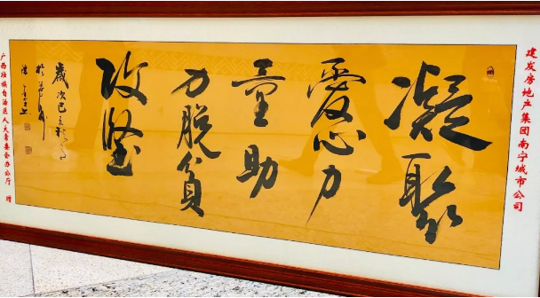 活動(dòng)現(xiàn)場(chǎng),主辦方授予建發(fā)房地產(chǎn)集團(tuán)華南區(qū)域南寧城市公司愛(ài)心牌匾,同時(shí)廣西著名書(shū)法家當(dāng)場(chǎng)贈(zèng)予書(shū)法作品。