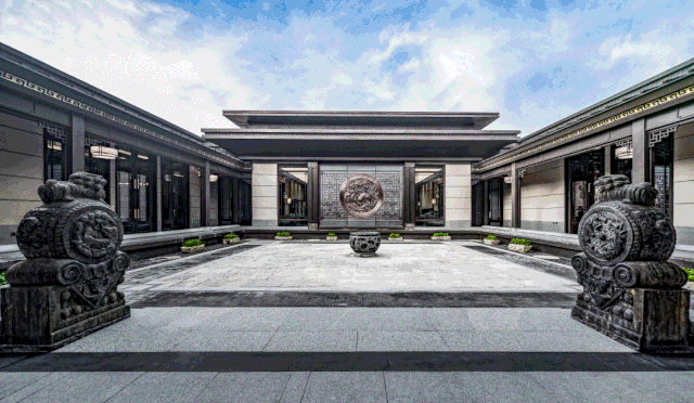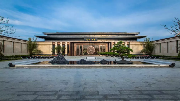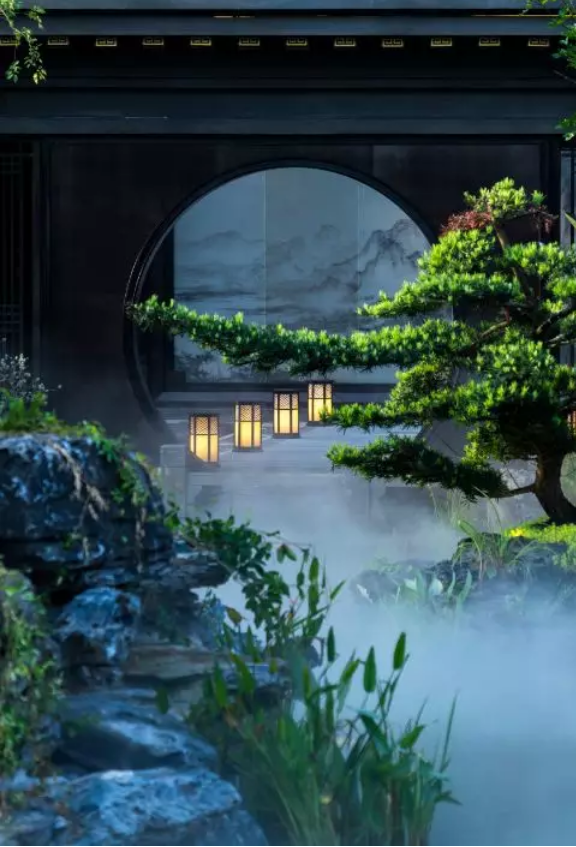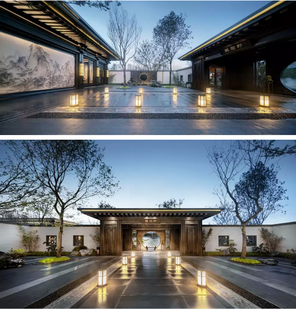 中國的傳統(tǒng)園林講究門庭禮制,南京央譽(yù)注入王府形制的威嚴(yán)雄偉。門頭牌匾由王羲之五十五世傳人王彥宏親筆撰寫,前場中心的“浮鏡”主題水景,水面上“浮”著的假山和造型松,彰顯山水與人文的優(yōu)雅。