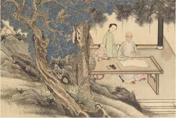 【清】尤詔、汪恭《隨園湖樓請業(yè)圖》(部分)