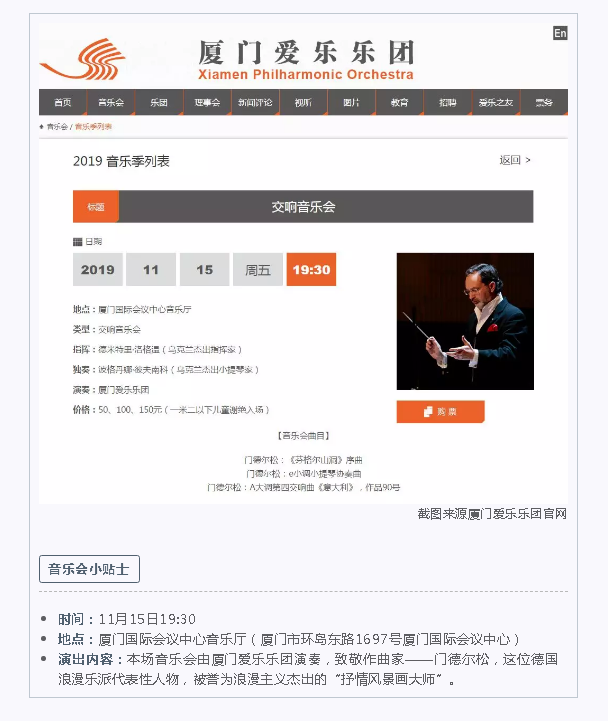 截圖來源廈門愛樂樂團(tuán)官網(wǎng)