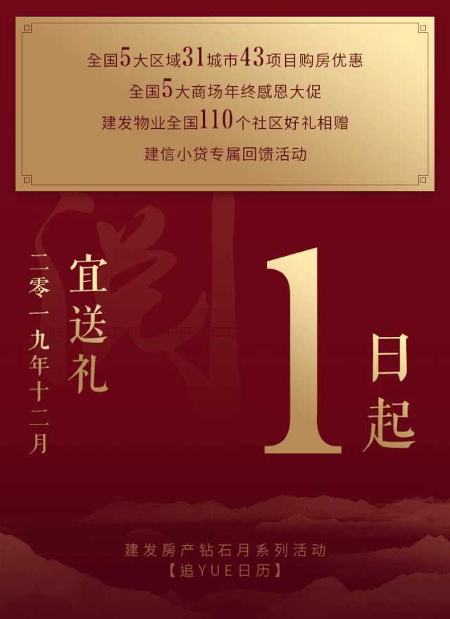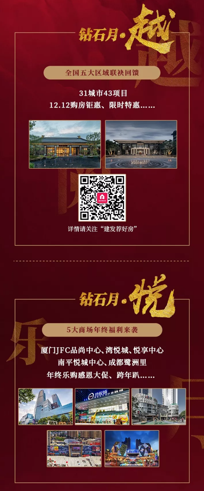 12月,建發(fā)房產(chǎn)重磅推出鉆石月回饋活動和福利,整合6大業(yè)務板塊資源,覆蓋31城市、43項目、110個社區(qū)、5大商場,呈現(xiàn)更多精彩。
