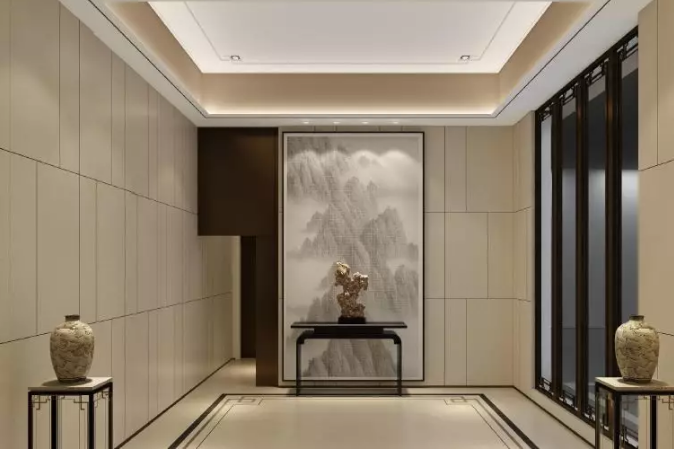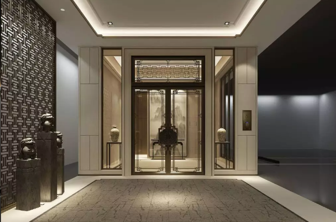 和首層門廳一樣尊貴的中式入戶大堂,營造濃郁的禮序感。從外立面到門套、窗戶,精致考究,不放過任何一個細節(jié)。